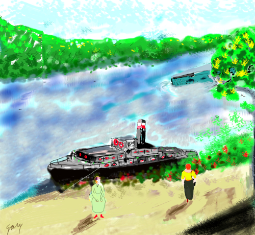 Bonjour de Paris! Flew here on Monday from Ukraine’s beautiful capital. Staying at a friend’s house while she is visiting family in the US. Yesterday we went to Conflans-Sainte-Honorine. There is a community of retired barge owners and workers, and the boarding school for the children of same, still in operation. There are lovely views of the Seine as well as some neat old buildings. Barges continue to operate on the Seine and other rivers of France.