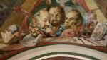 Petras Repšys (1940) painted a rather strange set of scenes on the ceiling and walls of a room at the University of Vilnius. It is worth a look. He is a graduate of Vilnius Art Institute (1967) Works in sheet, book, graphic arts, ex libris, easel paintings, frescoes, sculptures, medals. The exilibrisus began to develop in 1969 . Here are some photos of his fresco “Seasons of the Year,” executed from (1974-1984).